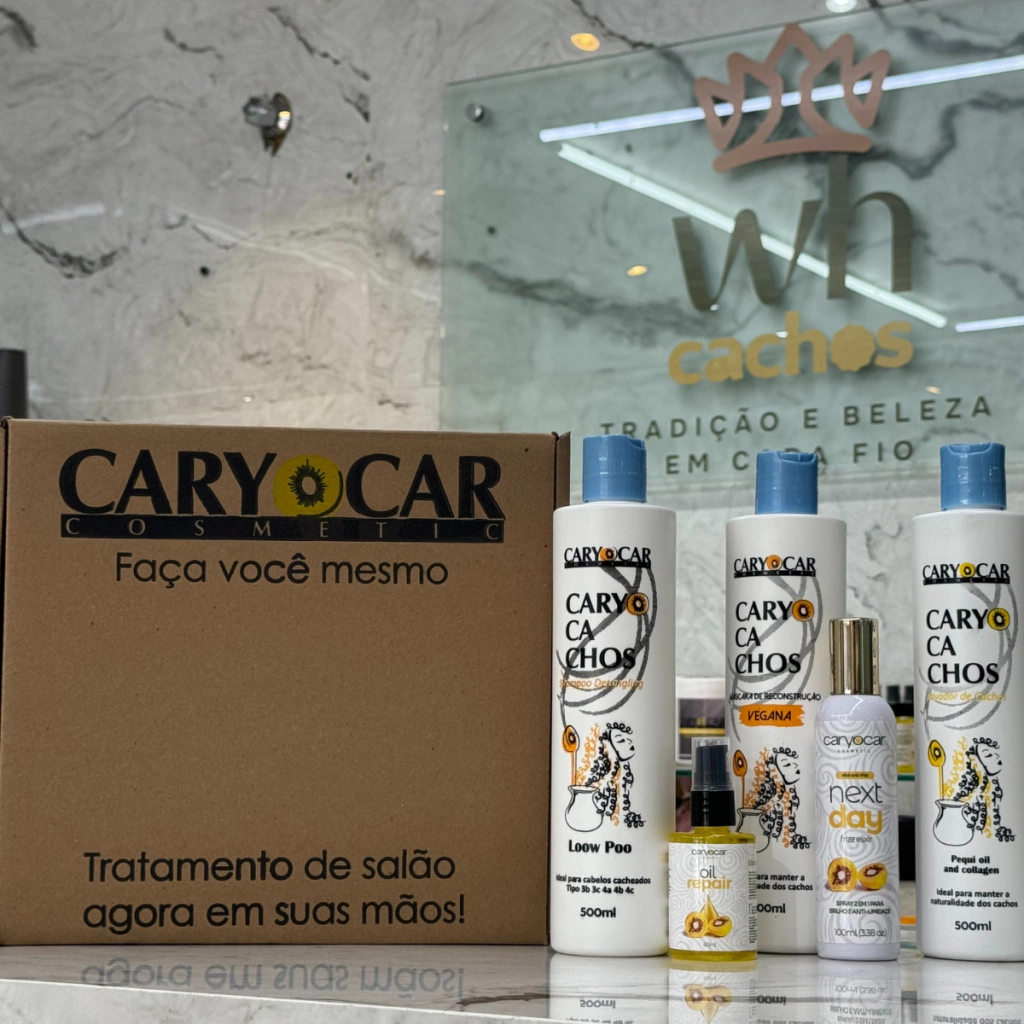 Máscara Hidratante Intensiva Caryocachos (500ml): Uma máscara rica em nutrientes que proporciona uma hidratação profunda, revitalizando e restaurando a saúde dos fios. Seus cachos ficarão mais macios e maleáveis.